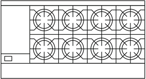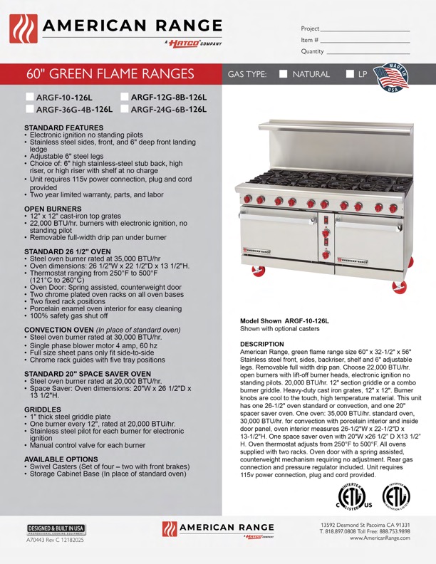 Green Flame series range 60″ with the option of open burners or griddles or a combination