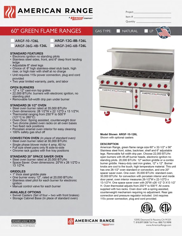 Ideal for low-volume cooking such as churches, fire stations, community centers, retirement centers, and anywhere else a commercial range is required
