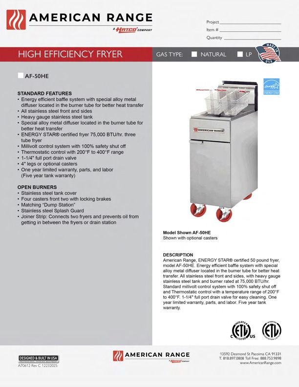 - ENERGY STAR® certified fryer 75,000 BTU/hr.